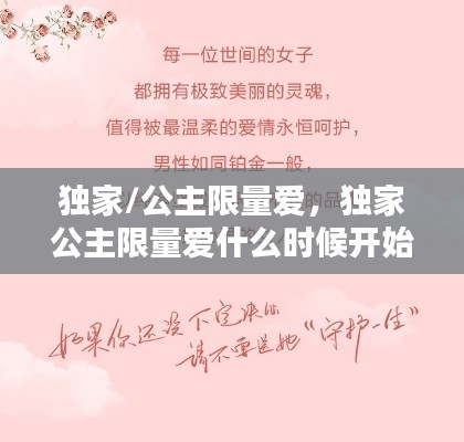 在这个繁华的世界里,每个人都渴望拥有一份独特的爱。而“独家/公主限量爱”就是这样一场浪漫的邂逅,它将爱情的美好与限量版的珍贵相结合,为那些追求独特体验的人们带来了无尽的惊喜。